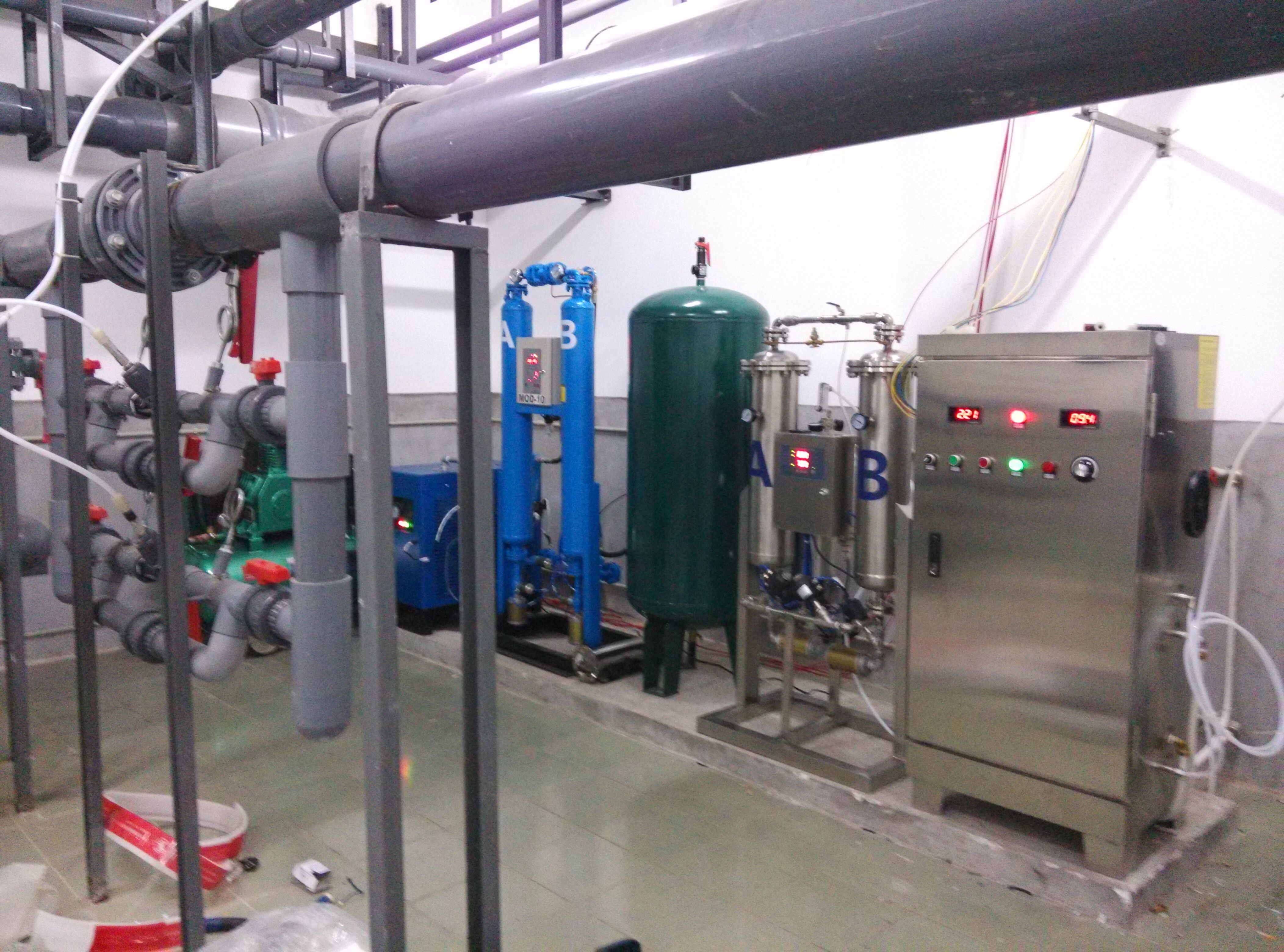 臭氧機提示您臭氧會把水中的有機物、色度、類蛋白氨變為水和二氧化碳等無機物。在殺菌能力方面,臭氧是氯的2000倍以上。在水中,臭氧會在20分鐘內自行分解,因此利用臭氧作游泳池水體消毒,不存在殘留和二次污染的問題。臭氧消毒系統適用于大型的戲水樂園、奧林匹克泳池、賓館內的中小泳池。臭氧消毒系統的模塊化結構大大簡化了游泳池循環水處理的基本結構,從而減少了占地面積、節約工程投資、維修方便。